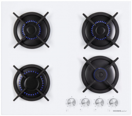 поверхность газовая, 60 см, газ на стекле, 4 конфорки, решетки эмалированные, белый