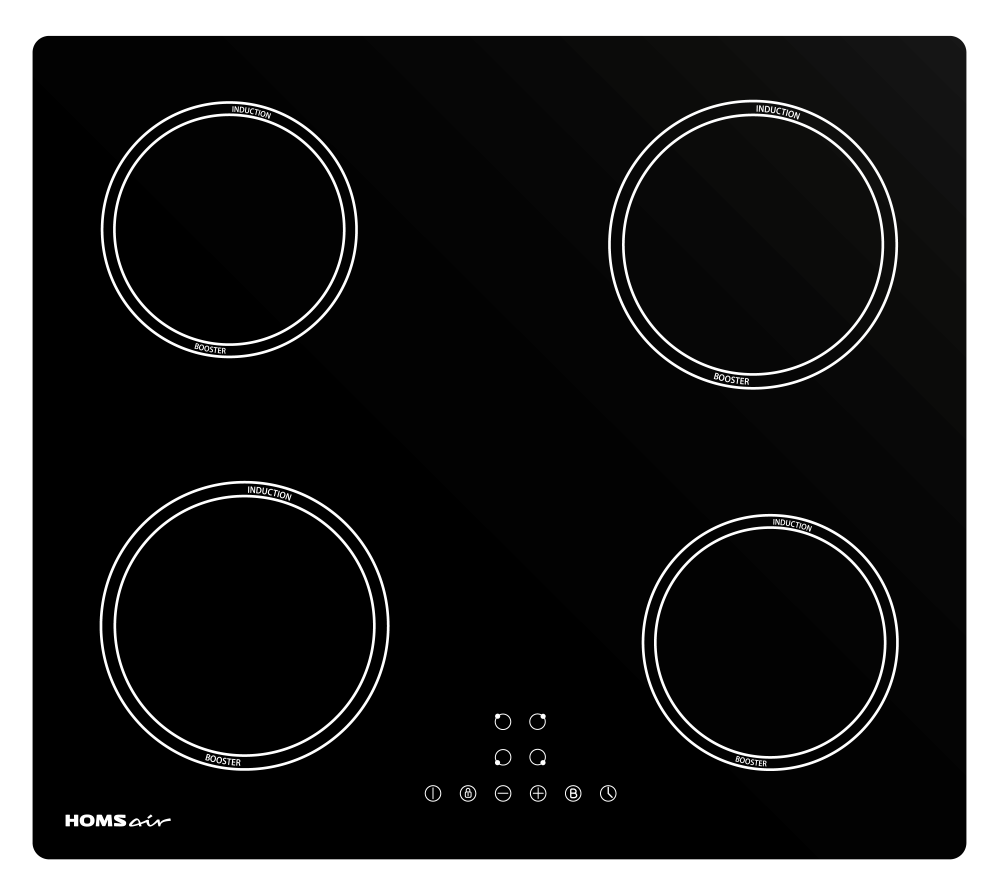 поверхность варочная стеклокерамическая индукционная, 60 см, черный