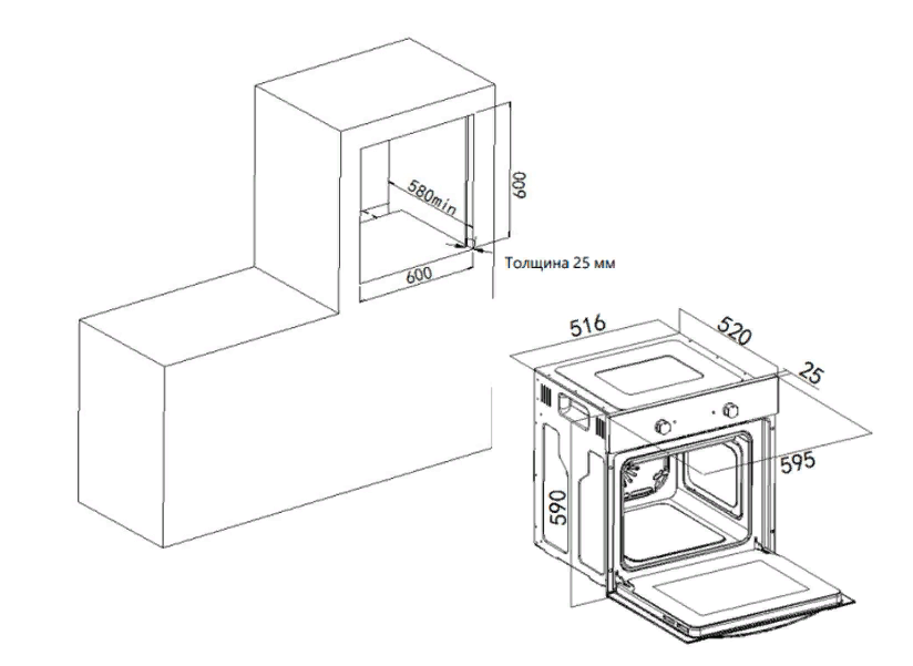 Ширина корпуса электроприбора. Особенно важно точно знать точную допустимую ширину для встраиваемой техники.