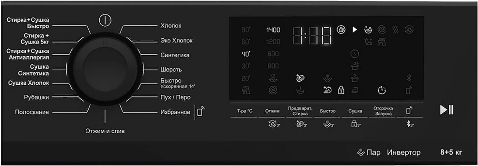 Небольшой экран на передней панели прибора. Помогает выбирать программу, менять настройки. На дисплее выводятся сообщения об ошибке.