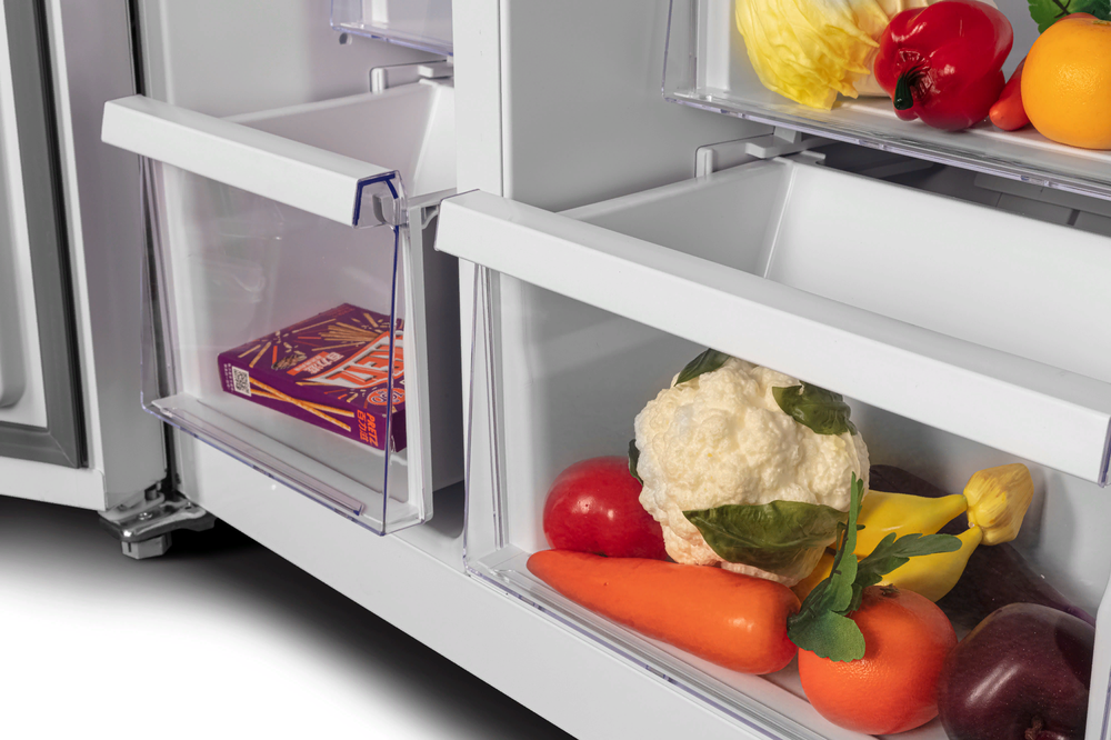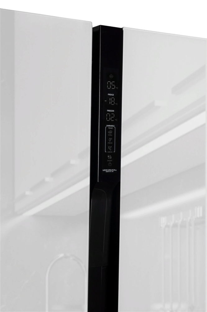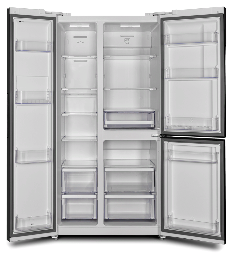 холодильник-морозильник Side-by-Side отдельностоящий, 552 л, класс энергопотребления А+, No Frost, 91,1х65,6х183 см, белое стекло