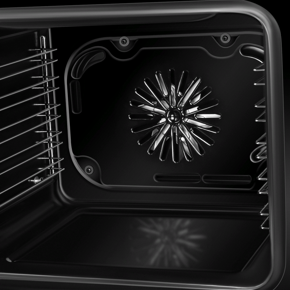Предполагает наличие встроенного вентилятора, который обеспечивает равномерное запекание благодаря непрерывной циркуляции горячего воздуха.