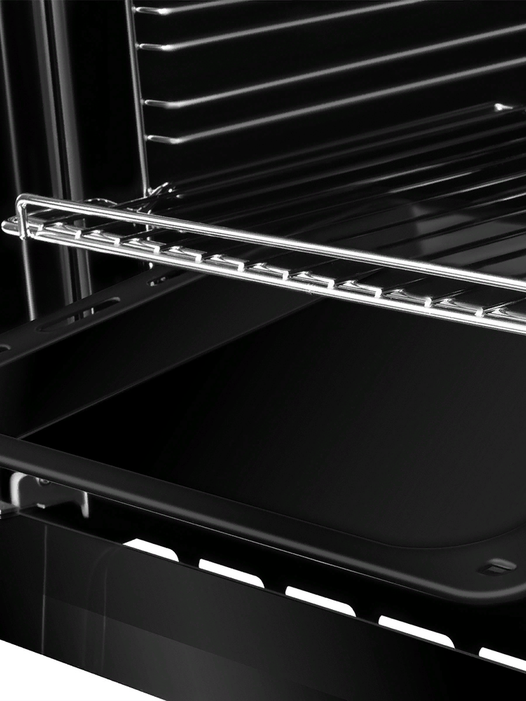 Выдвижные металлические полозья, которые легко выезжают за пределы камеры духовки вместе с противнем, не давая ему упасть.