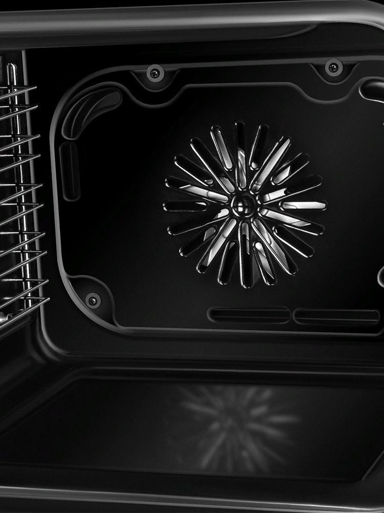 Предполагает наличие встроенного вентилятора, который обеспечивает равномерное запекание благодаря непрерывной циркуляции горячего воздуха.