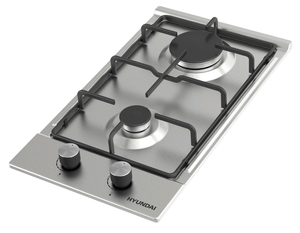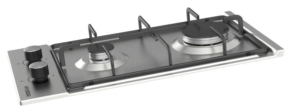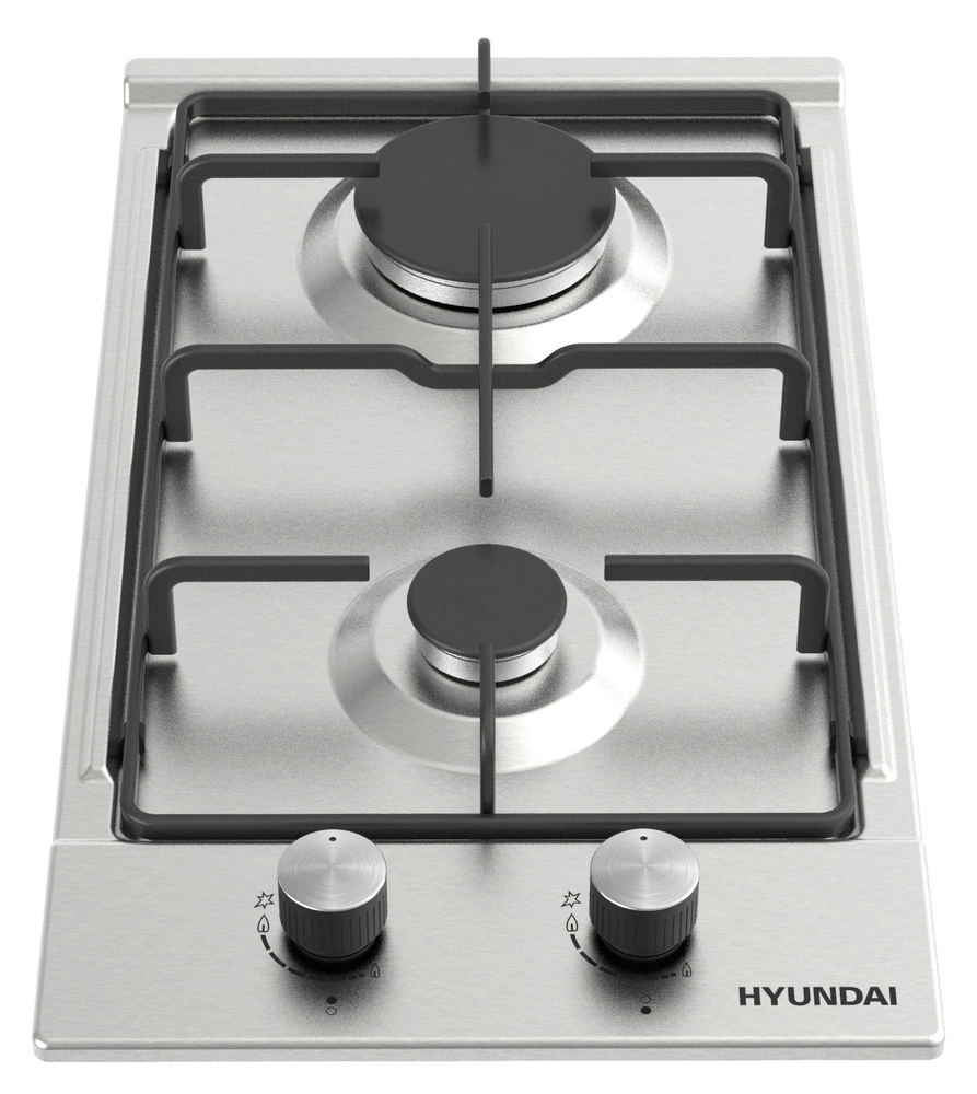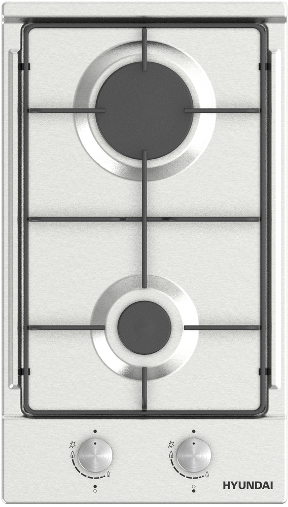 поверхность газовая, 30 см, газ на металле, 2 конфорки, решетки эмалированные, серебристый
