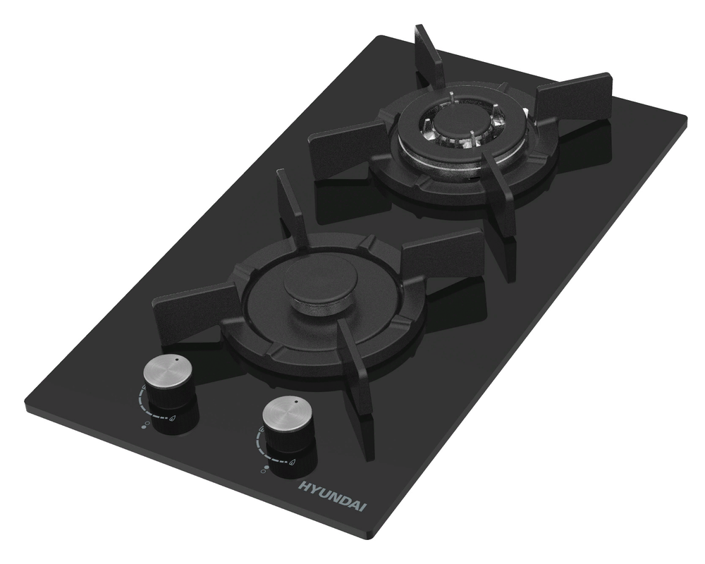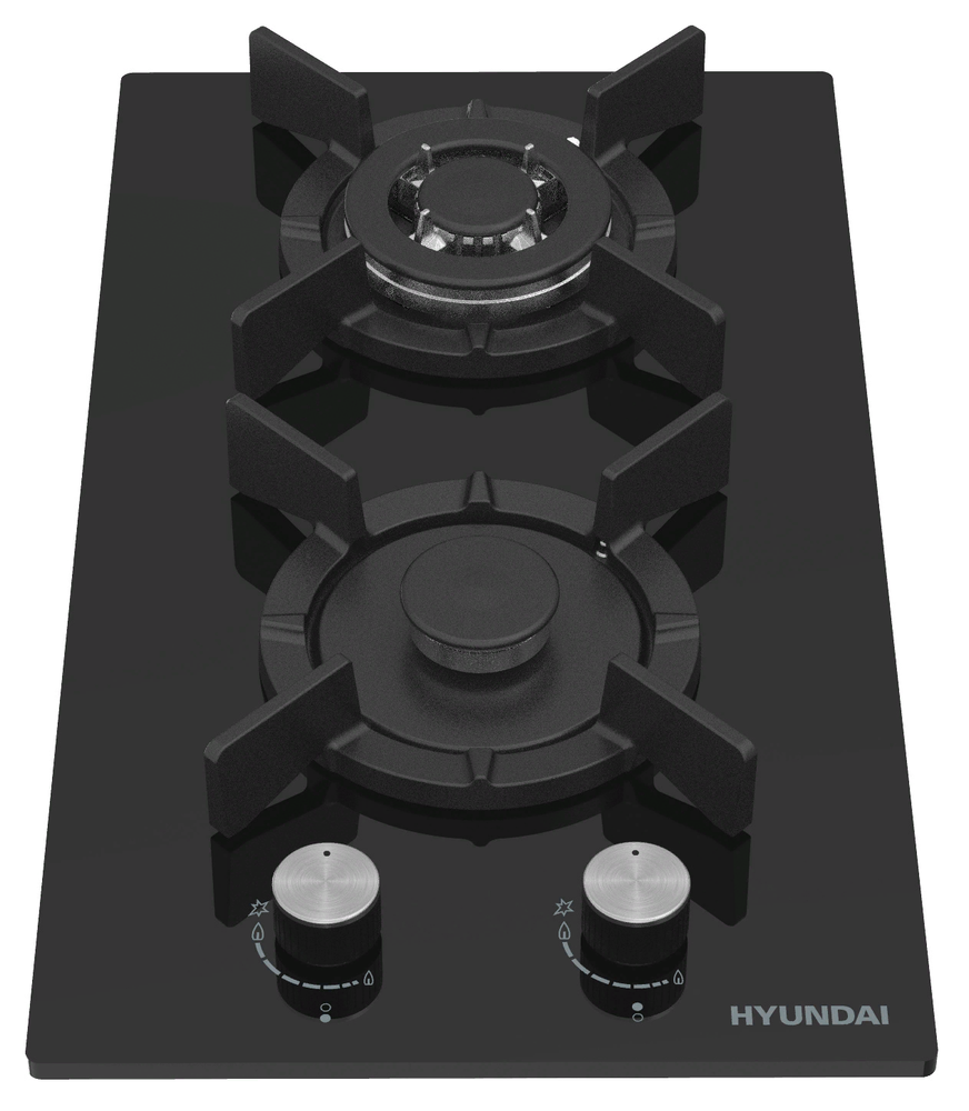 поверхность газовая, 30 см, газ на стекле, 2 конфорки, решетки чугунные, черный
