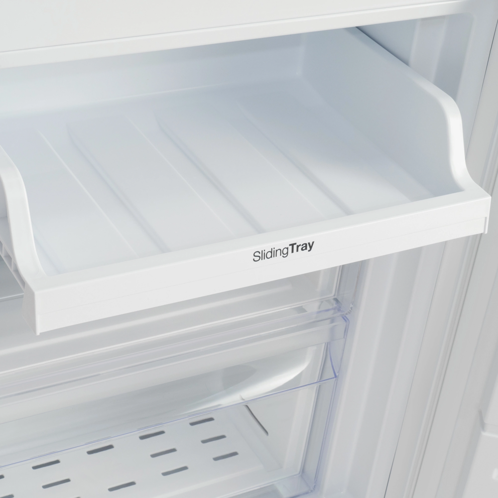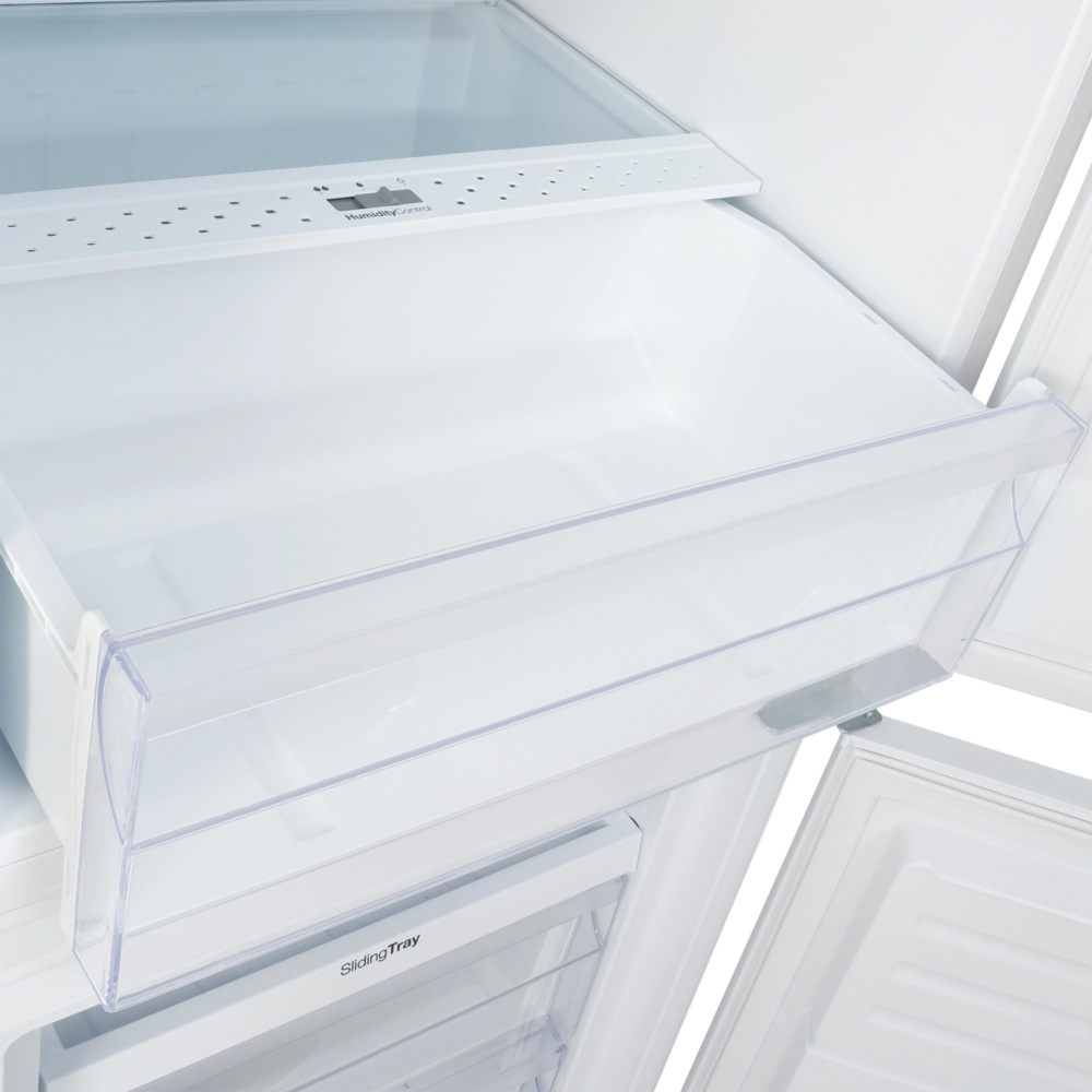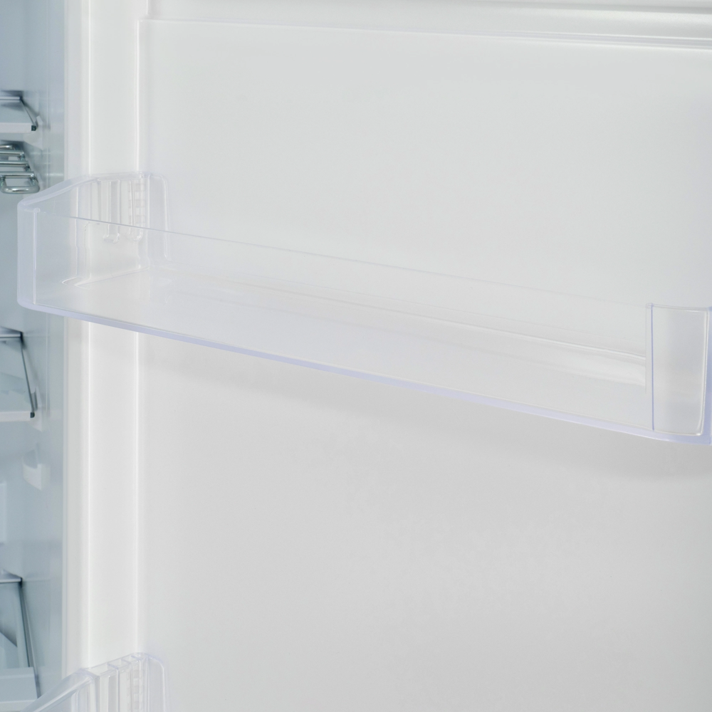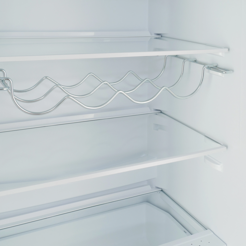 Общий объем холодильника – 243 л. Храните продукты и напитки в просторной холодильной камере на 180 л. Внутри расположены три полки из прочного закаленного стекла. Регулируйте расстояние между ними, чтобы комфортно разместить большой торт или высокие кастрюли. Кладите овощи и фрукты в выдвижной ящик, чтобы сохранить их полезные свойства. На дополнительную полку для вина поместится четыре бутылки. Объем морозильной камеры составляет 63 л, предусмотрено три выдвижных отделения.