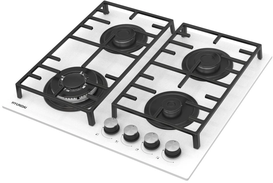 поверхность газовая, 60 см, газ на стекле, 4 конфорки, решетки чугунные, белый