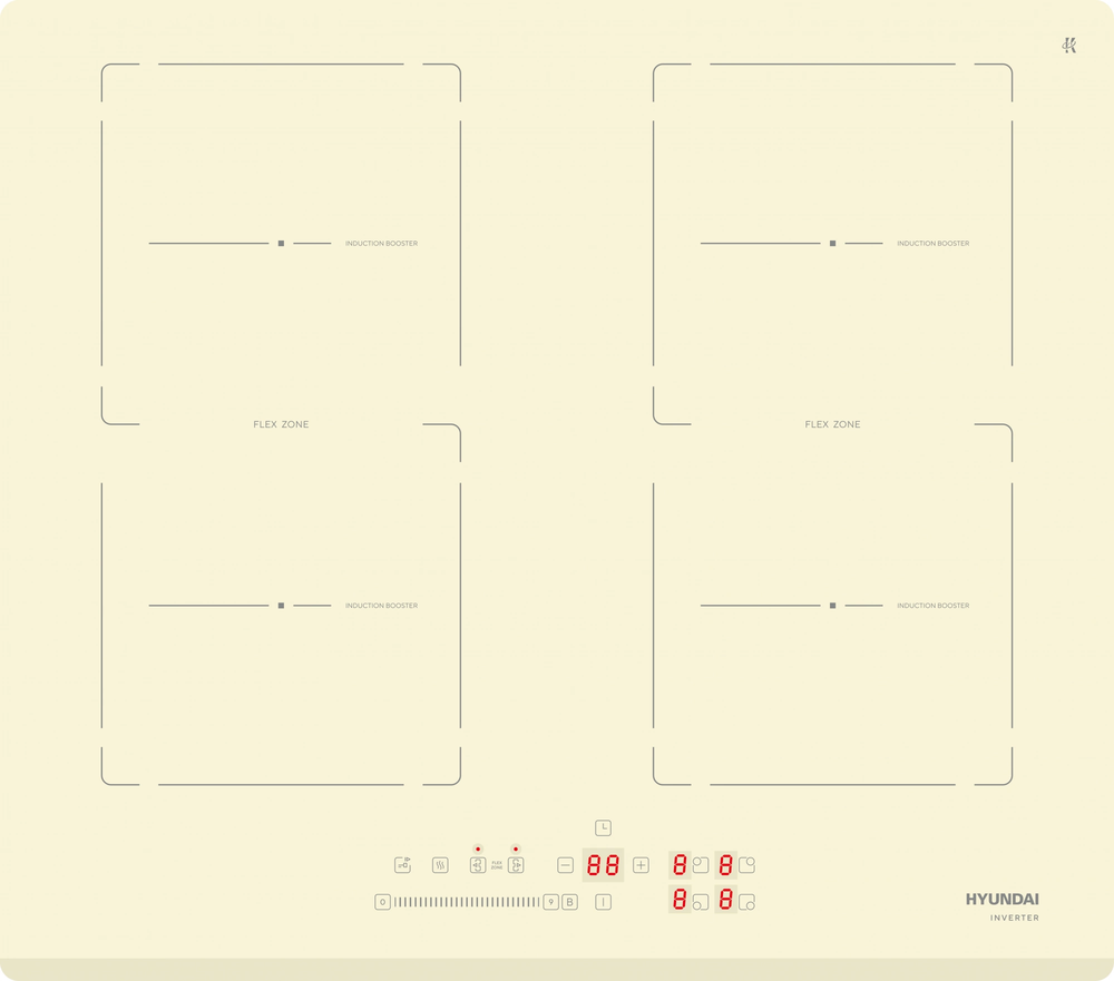 поверхность варочная стеклокерамическая индукционная, 60 см, бежевый, передний металлический край