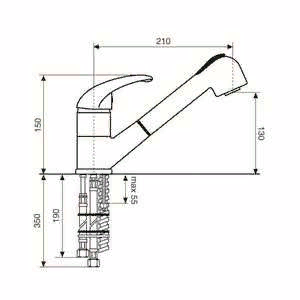 Встроенная в кран насадка на длинном гибком шланге с металлической оплеткой. Насадки с кнопкой могут переключать обычный излив воды на душ.