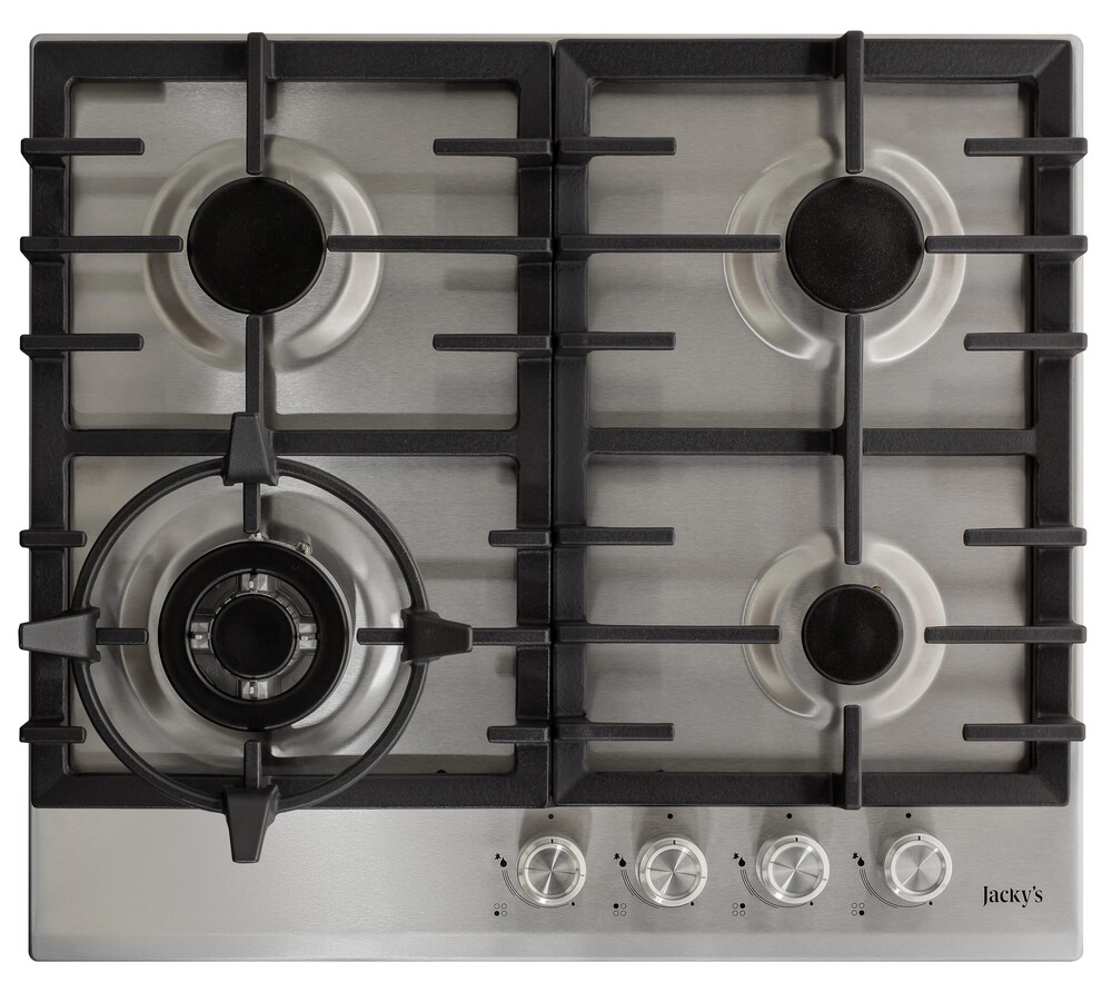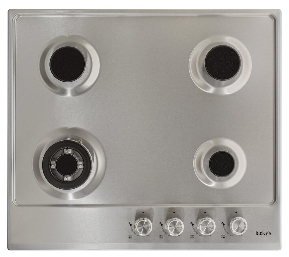 поверхность газовая, 60 см, газ на металле, 4 конфорки, чугунные решетки, нержавеющая сталь