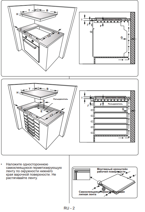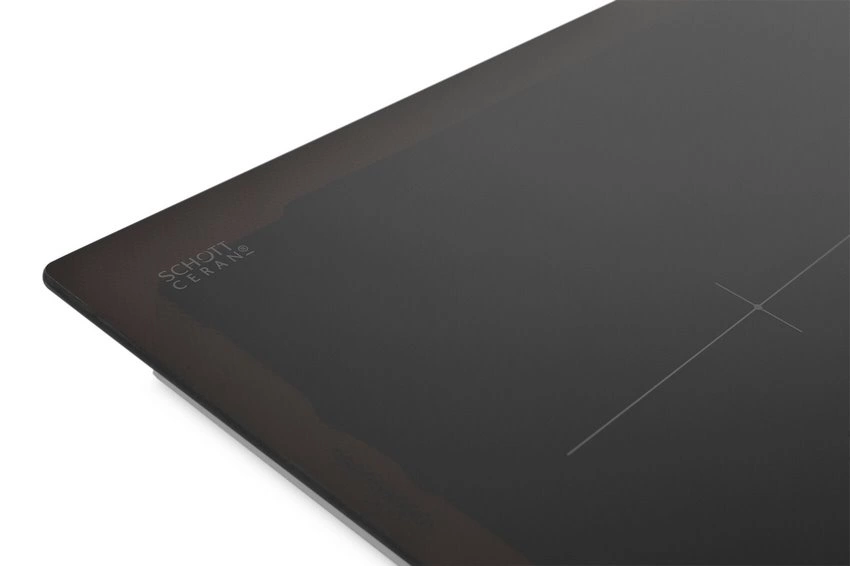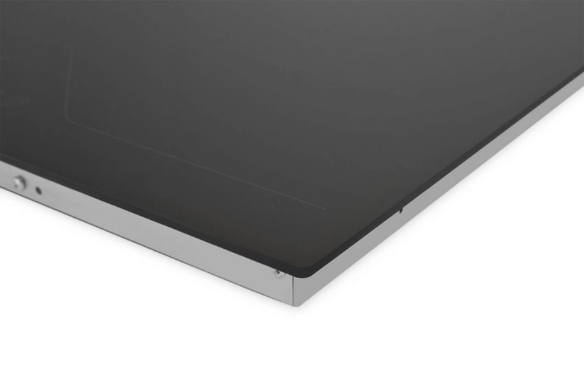 Характер огранки фаски на внешней стороне варочной панели. Металлические рамки предотвращают забивание монтажных швов крошками и пылью.