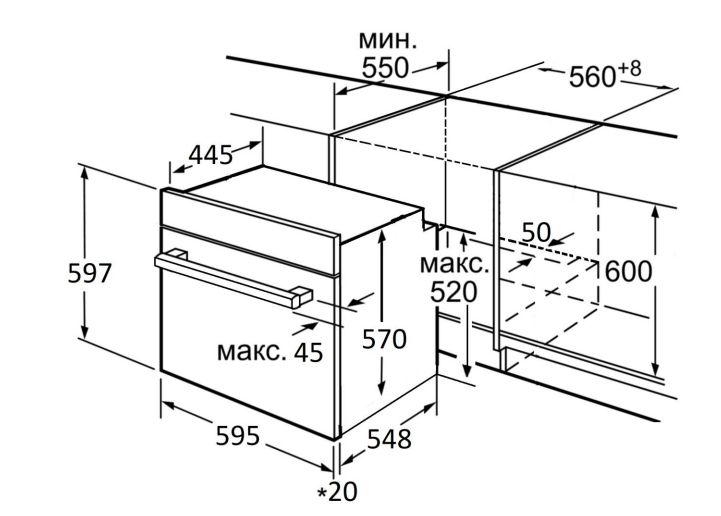 Ширина корпуса электроприбора. Особенно важно точно знать точную допустимую ширину для встраиваемой техники.