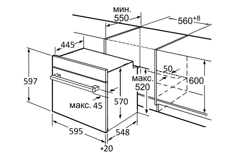 Ширина корпуса электроприбора. Особенно важно точно знать точную допустимую ширину для встраиваемой техники.