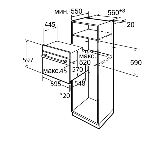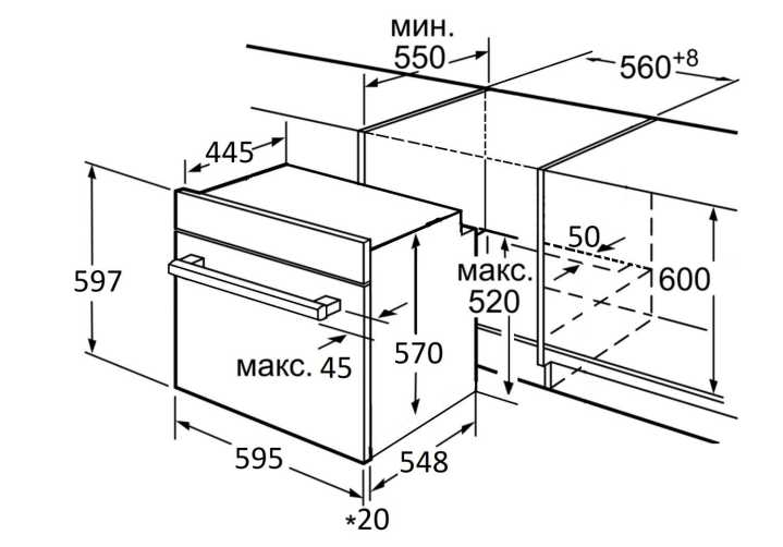Ширина корпуса электроприбора. Особенно важно точно знать точную допустимую ширину для встраиваемой техники.