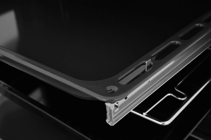 Выдвижные металлические полозья, которые легко выезжают за пределы камеры духовки вместе с противнем, не давая ему упасть.