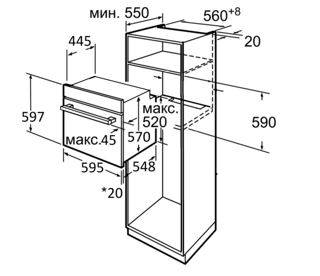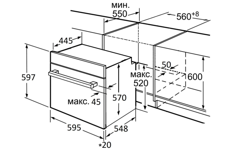 Ширина корпуса электроприбора. Особенно важно точно знать точную допустимую ширину для встраиваемой техники.