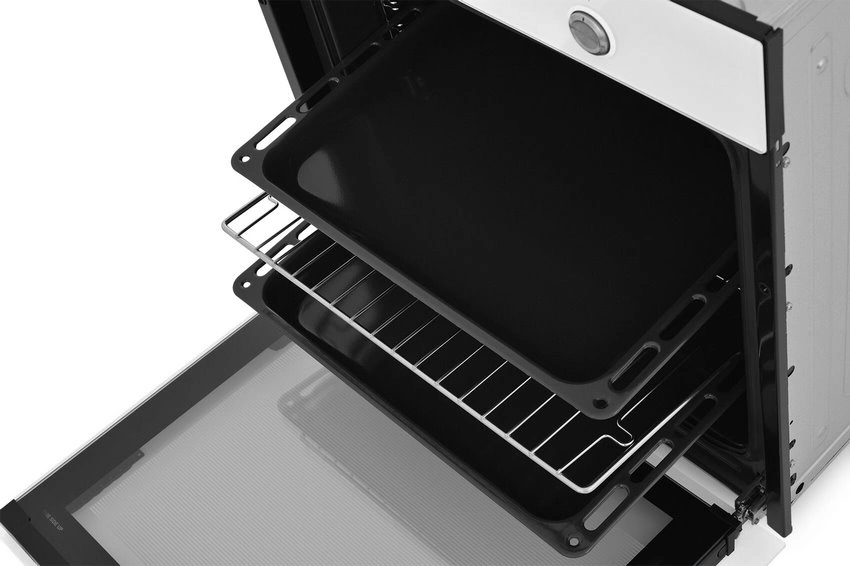 Выдвижные металлические полозья, которые легко выезжают за пределы камеры духовки вместе с противнем, не давая ему упасть.