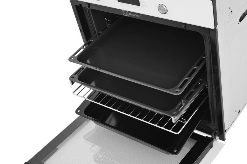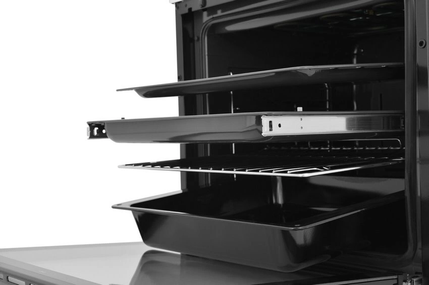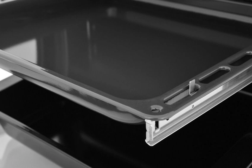 Выдвижные металлические полозья, которые легко выезжают за пределы камеры духовки вместе с противнем, не давая ему упасть.