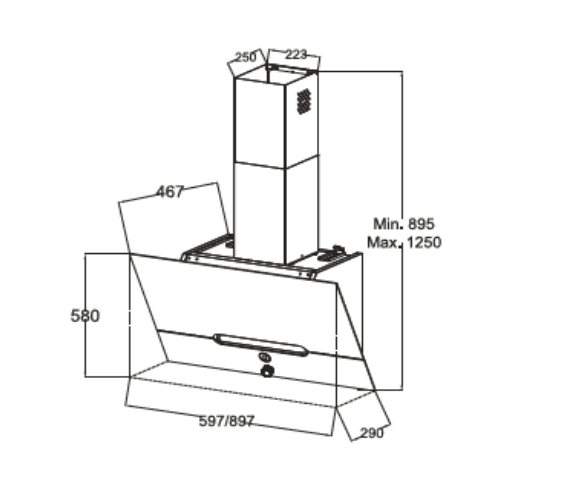 вытяжка наклонная, 60 см, 830 м3/ч, белое стекло