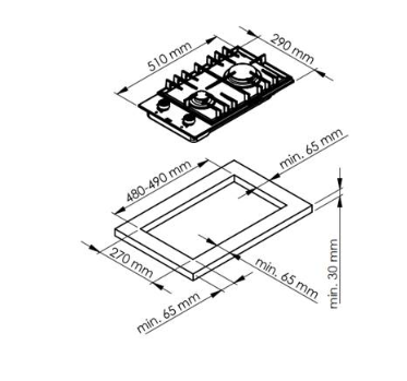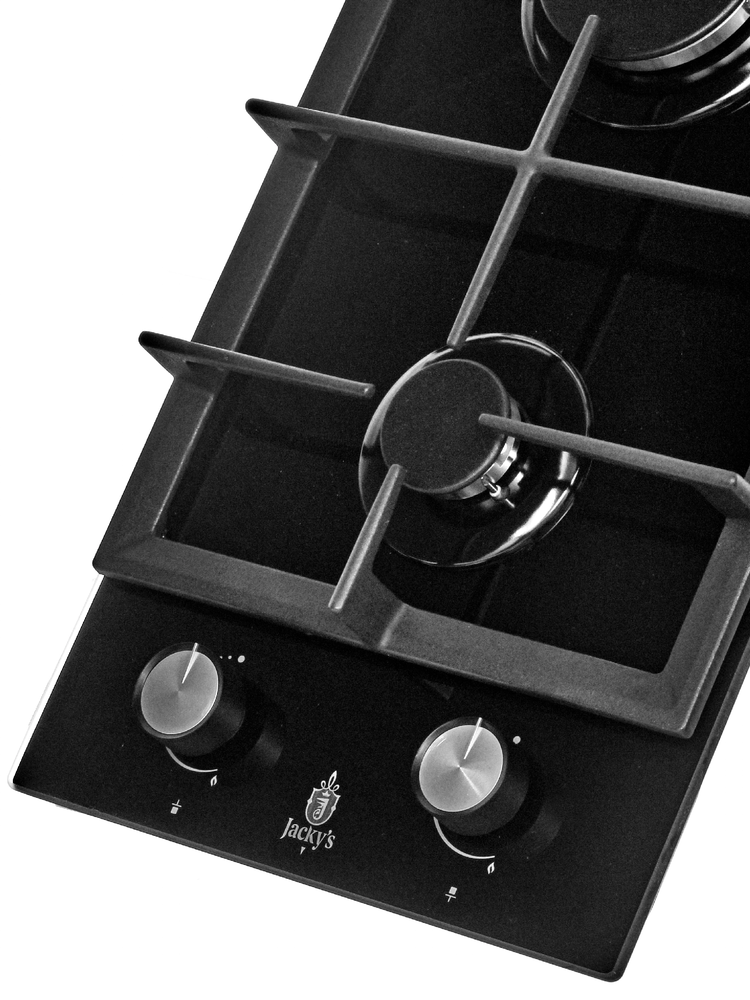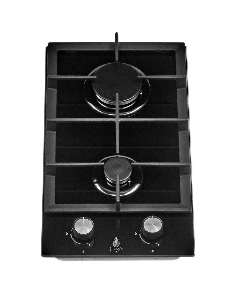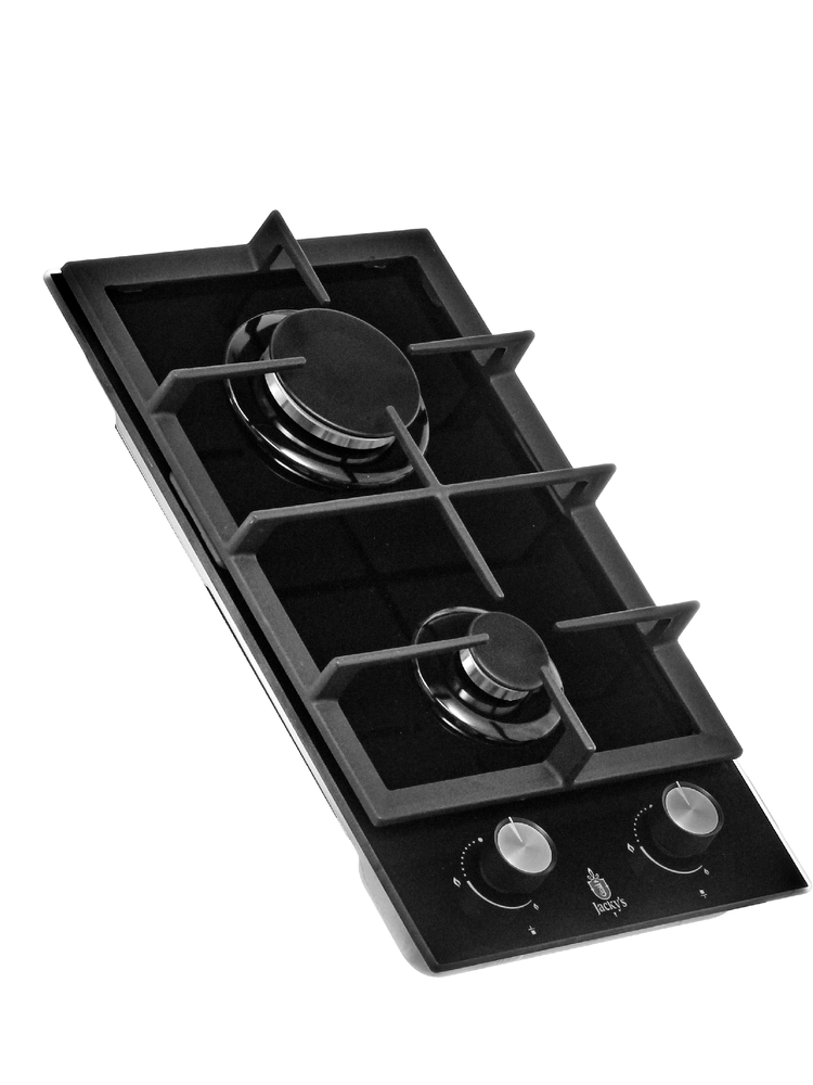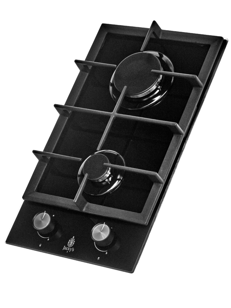 поверхность газовая, 30 см, газ на стекле, 2 конфорки, чугунные решетки, черный