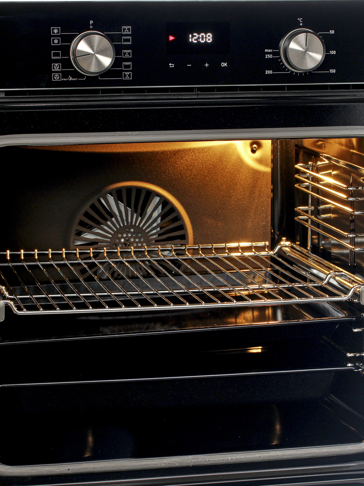 Предполагает наличие встроенного вентилятора, который обеспечивает равномерное запекание благодаря непрерывной циркуляции горячего воздуха.
