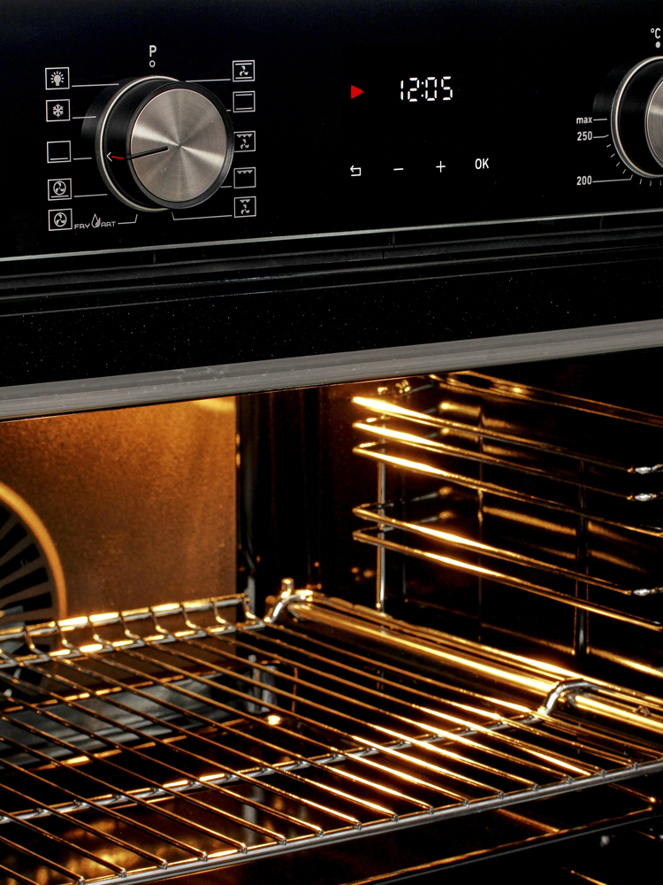 Чем больше стекол в дверце духовки, тем меньше она нагревается снаружи. Это снижает риск соприкосновения с горячей поверхностью и ожога.