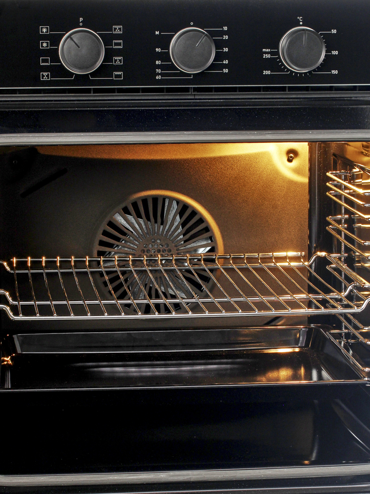 Предполагает наличие встроенного вентилятора, который обеспечивает равномерное запекание благодаря непрерывной циркуляции горячего воздуха.