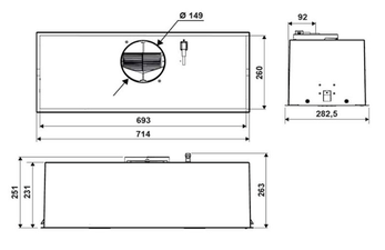 вытяжка встраиваемая в подвесной шкаф, 72 см, 800 м3/ч, белый