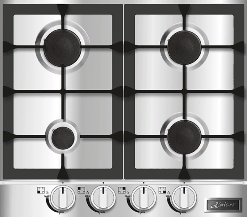 поверхность газовая независимая, 60 см, газ на металле, 4 конфорки, решетки чугунные, нержавеющая сталь