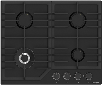 поверхность газовая, 60 см, газ на эмали, 4 конфорки, решетки чугунные, черный матовый