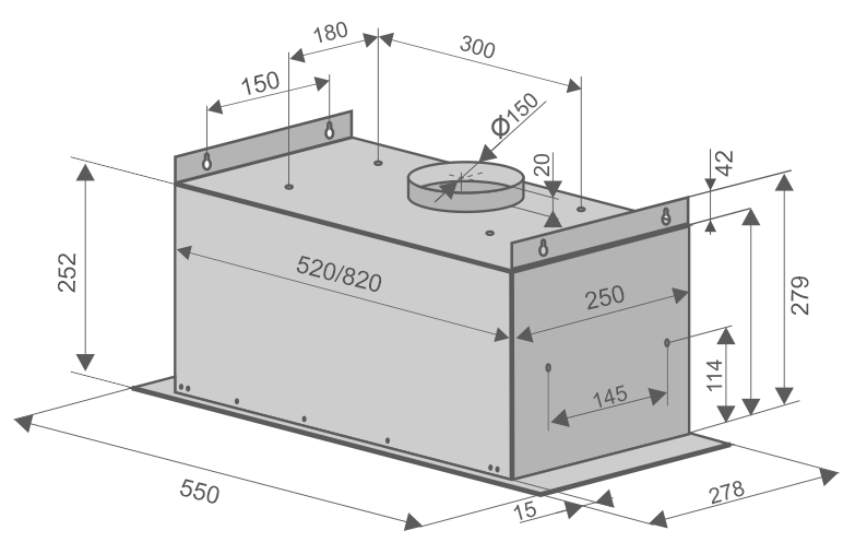 вытяжка встраиваемая в подвесной шкаф, 60 см, 900 м3/ч, нержавеющая сталь сатин