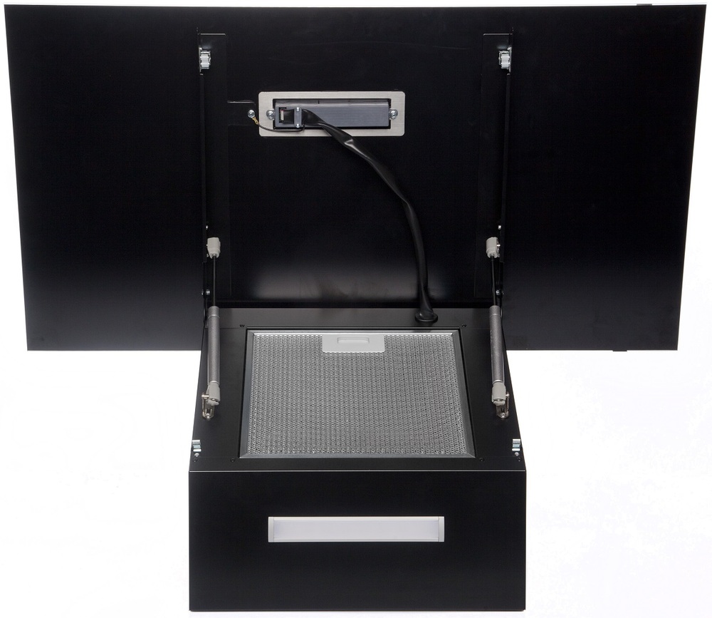 вытяжка наклонная, 90 см, 1200 м/ч, черный+черное стекло+полоска сатин