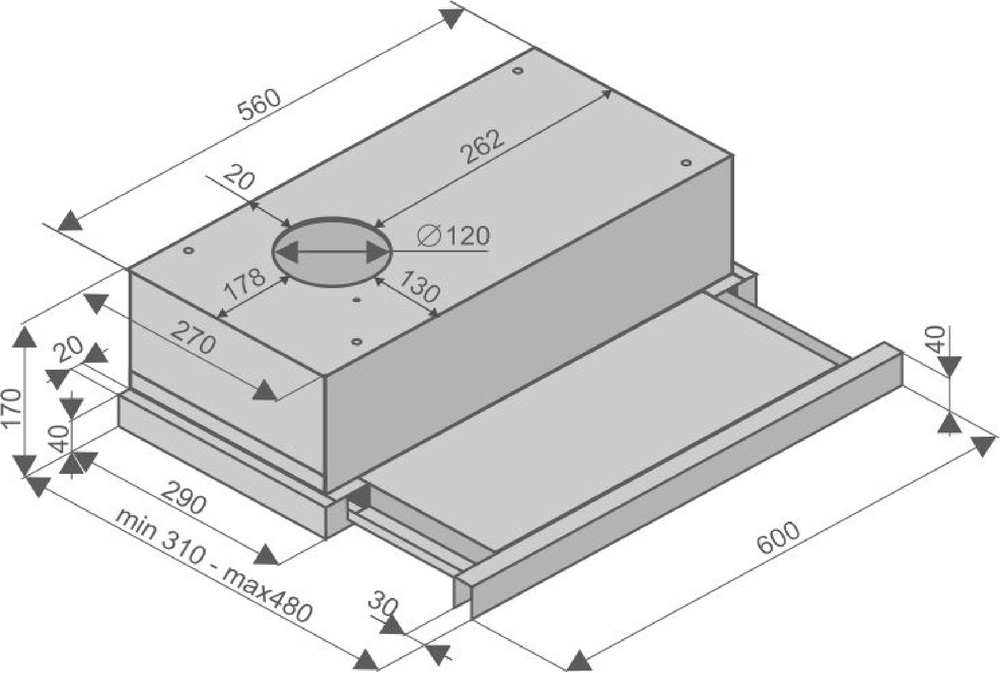 вытяжка встраиваемая телескопическая, 60 см, 450 м/ч, черный/передняя панель черное стекло