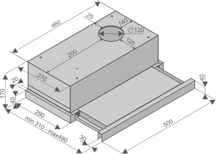 вытяжка встраиваемая телескопическая, 60 см, 450 м/ч, слоновая кость