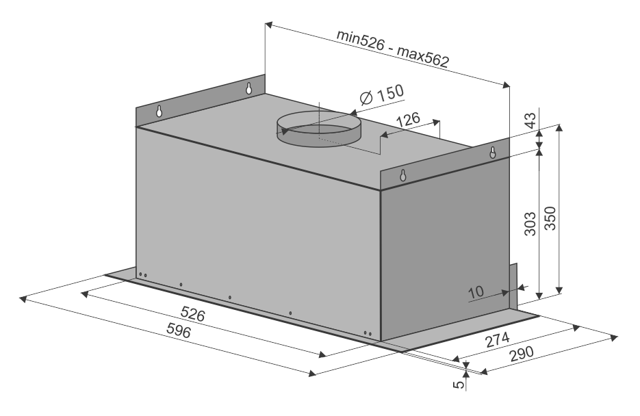 вытяжка встраиваемая в подвесной шкаф, 60 см, 1100 м3/ч, белый/белое стекло