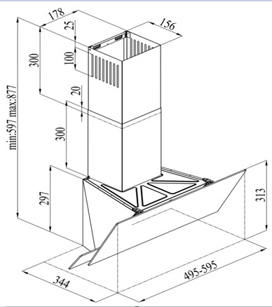 вытяжка наклонная, 50 см, 650 м/ч, черный/черное стекло