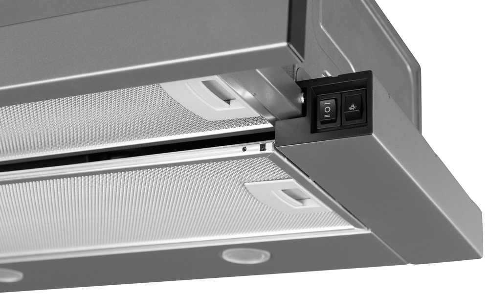 Эта модель оснащена выдвижной панелью, обеспечивая производительность до 650 м³/ч. Вытяжка имеет 2 уровня скорости и уровень шума до 59 дБ, что делает ее тихой и эффективной.
