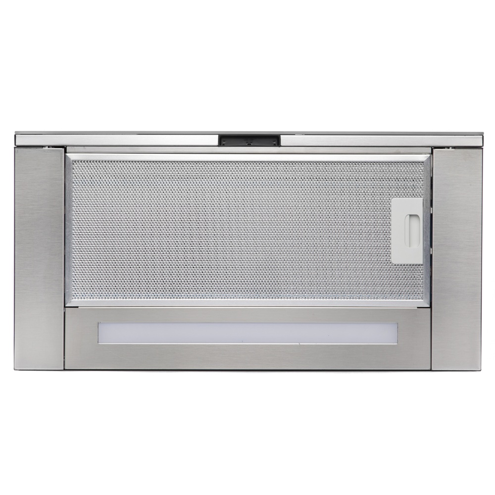 вытяжка встраиваемая телескопическая, 60 см, 900 м/ч, черный + передняя панель стекло нержавейка сатин