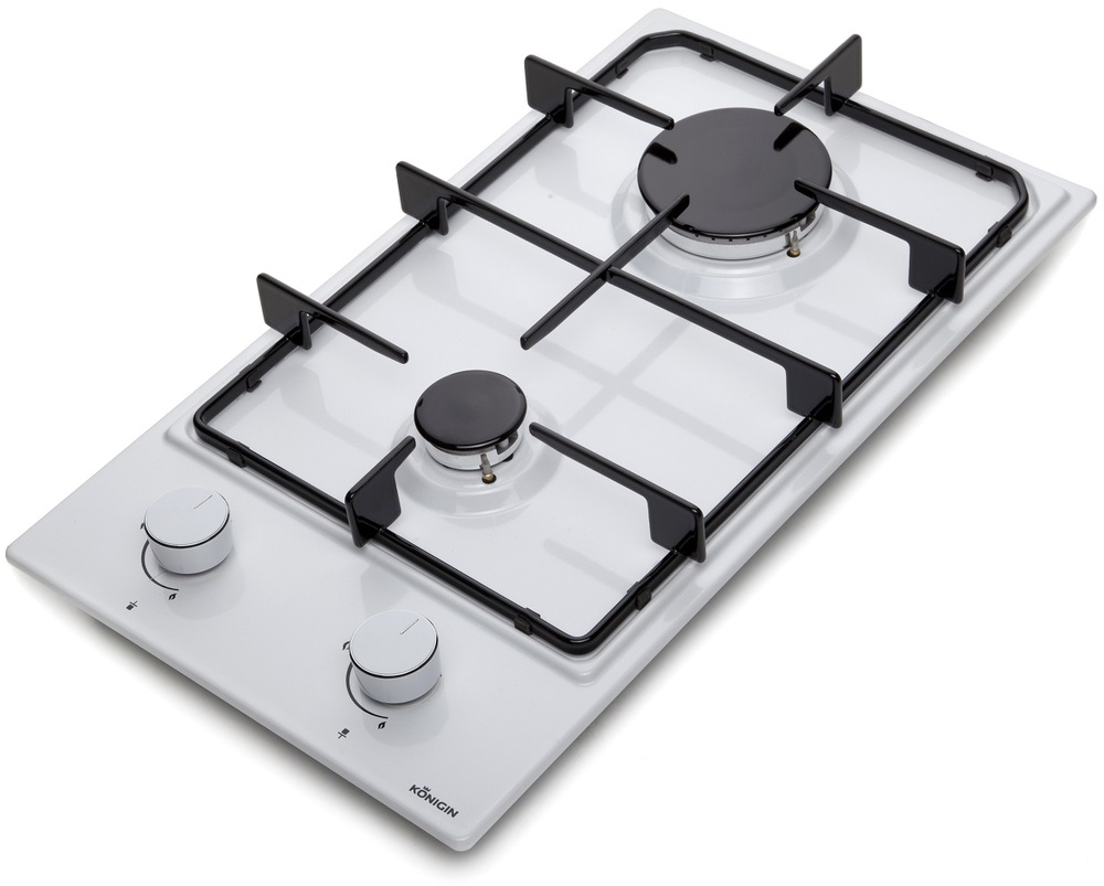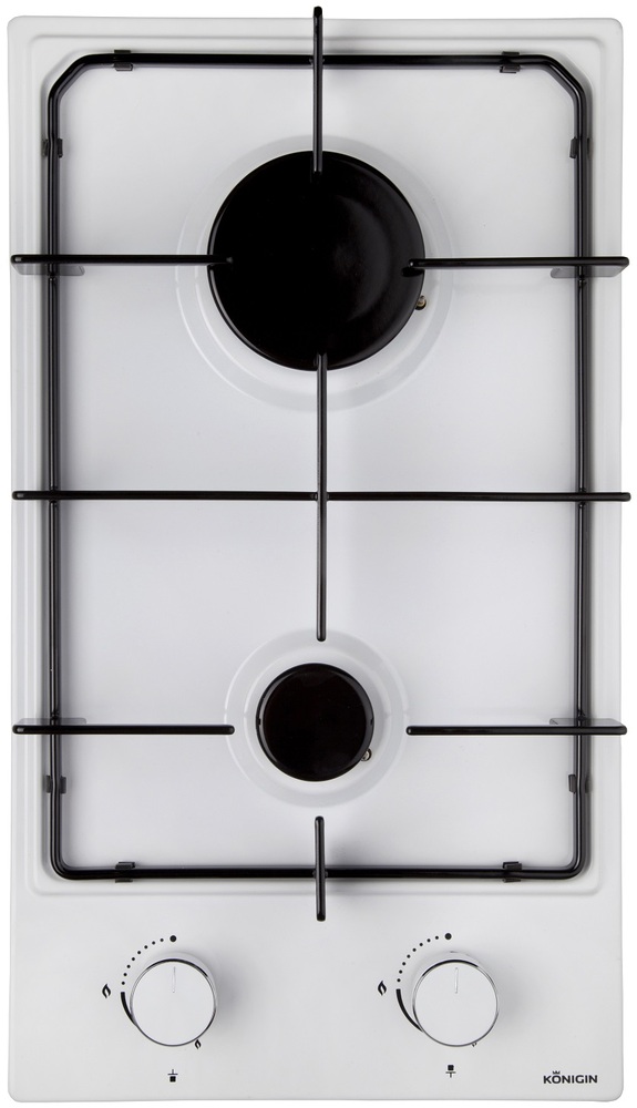 поверхность газовая, 30 см, газ на эмали, 2 конфорки, решетки эмалированные, белый