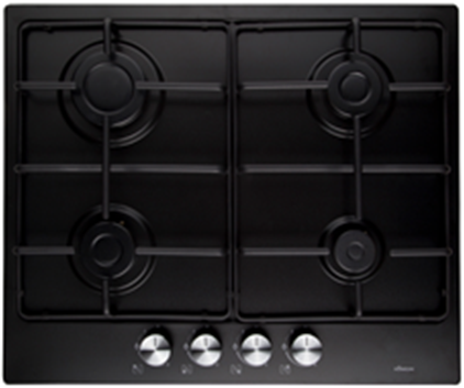 поверхность газовая, 60 см, газ на эмали, 4 конфорки, решетки эмалированные, черный матовый