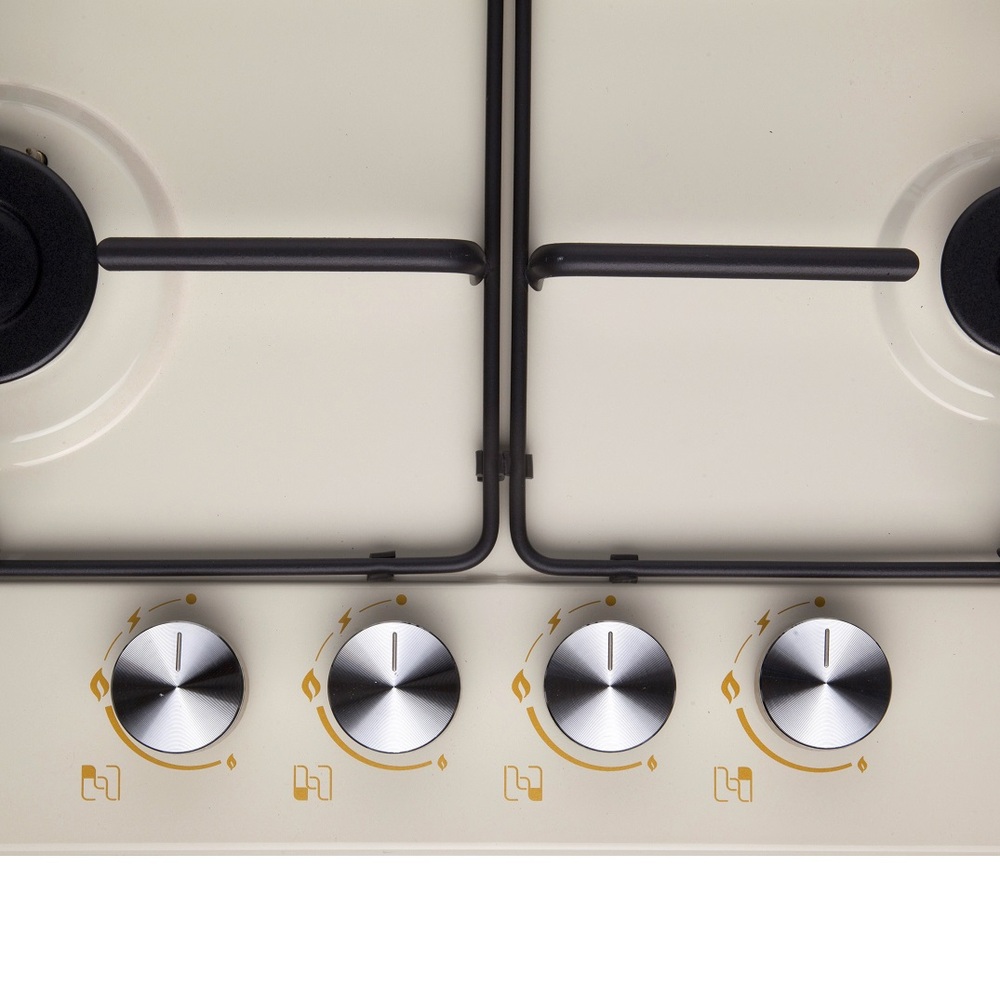 поверхность газовая, 60 см, газ на эмали, 4 конфорки, решетки эмалированные, слоновая кость