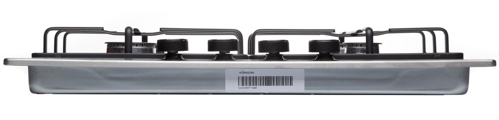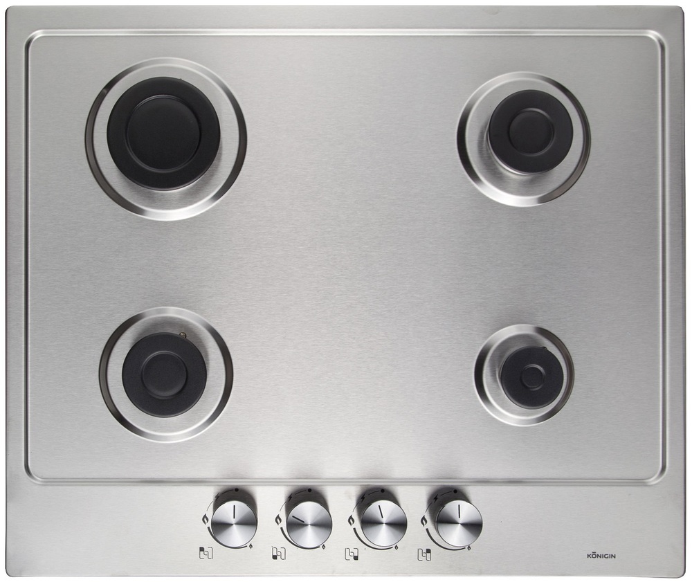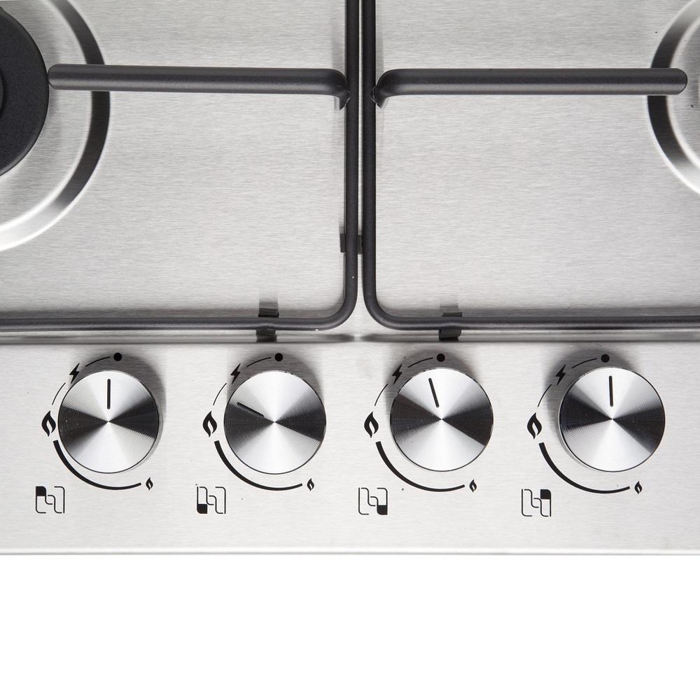 поверхность газовая, 60 см, газ на металле, 4 конфорки, решетки эмалированные, нержавеющая сталь