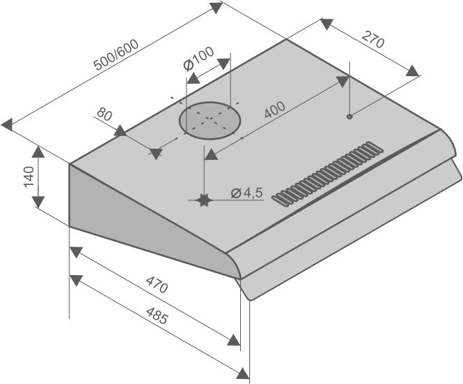 вытяжка стандартная, 60 см, 350 м/ч, нержавеющая сталь