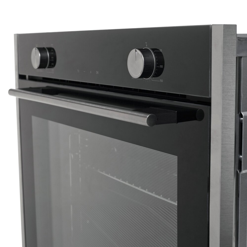 шкаф духовой электрический, 60 см, черное стекло + нержавеющая сталь