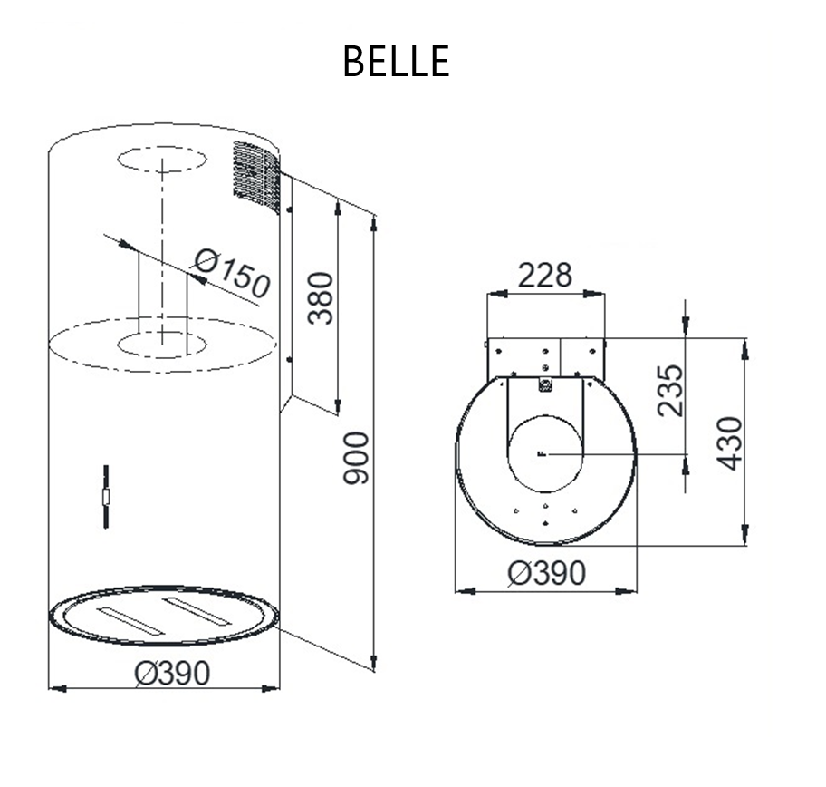 Konigin Belle Black/Black Glass 39 Вытяжка пристенная цилиндрическая
