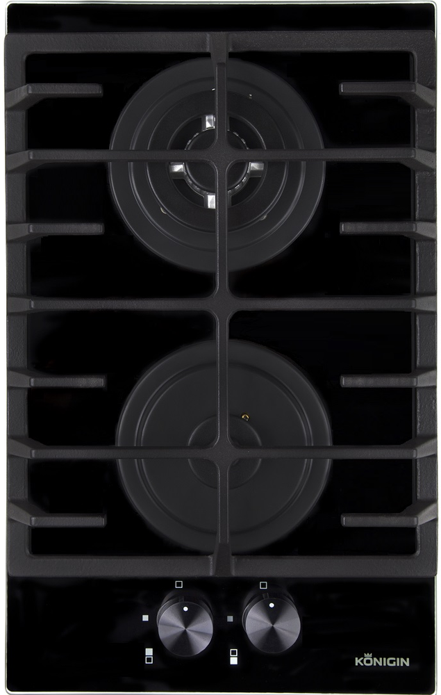 поверхность газовая, 30 см, газ на стекле, 2 конфорки, решетки чугунные, черное стекло