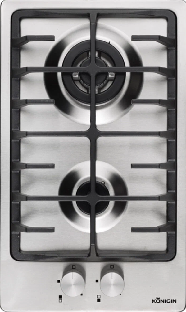 поверхность газовая, 30 см, газ на металле, 2 конфорки, решетки чугунные, нержавеющая сталь