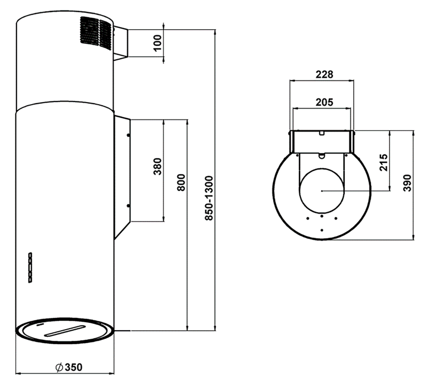 Konigin Illuvium W Black/Black Glass 35 Вытяжка пристенная цилиндрическая