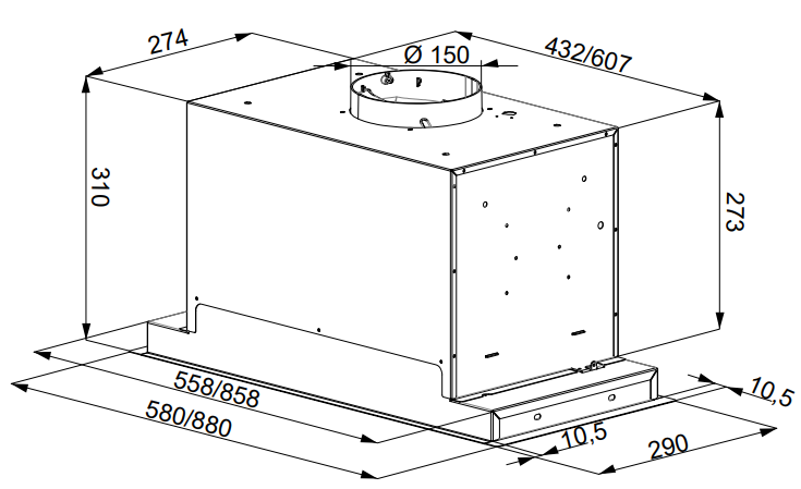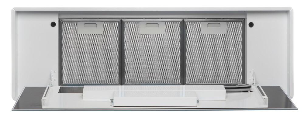 вытяжка встраиваемая в подвесной шкаф, 88 см, 1000 м3/ч, белый+ белое стекло